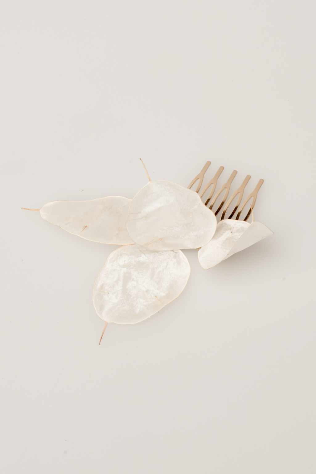 La peineta «Lola» irradia elegancia y misterio, confeccionada con lunaria. Su diseño delicado y etéreo evoca la belleza atemporal de la luna en una noche estrellada. Inspirada en la magia y el encanto de la noche, esta peineta añade un toque de misterio y sofisticación a cualquier peinado, recordándote la fascinación que despierta la luz de la luna en la oscuridad de la noche.